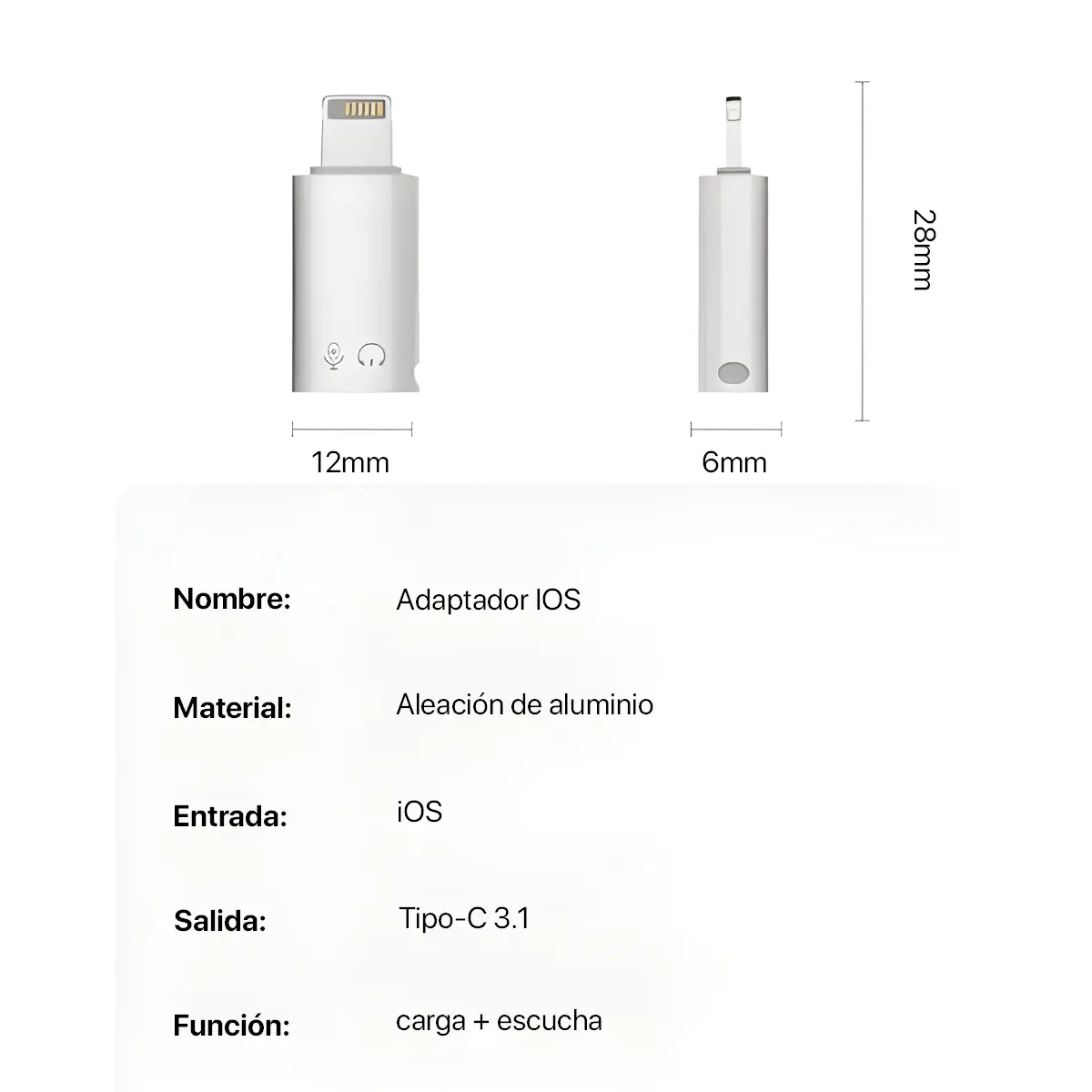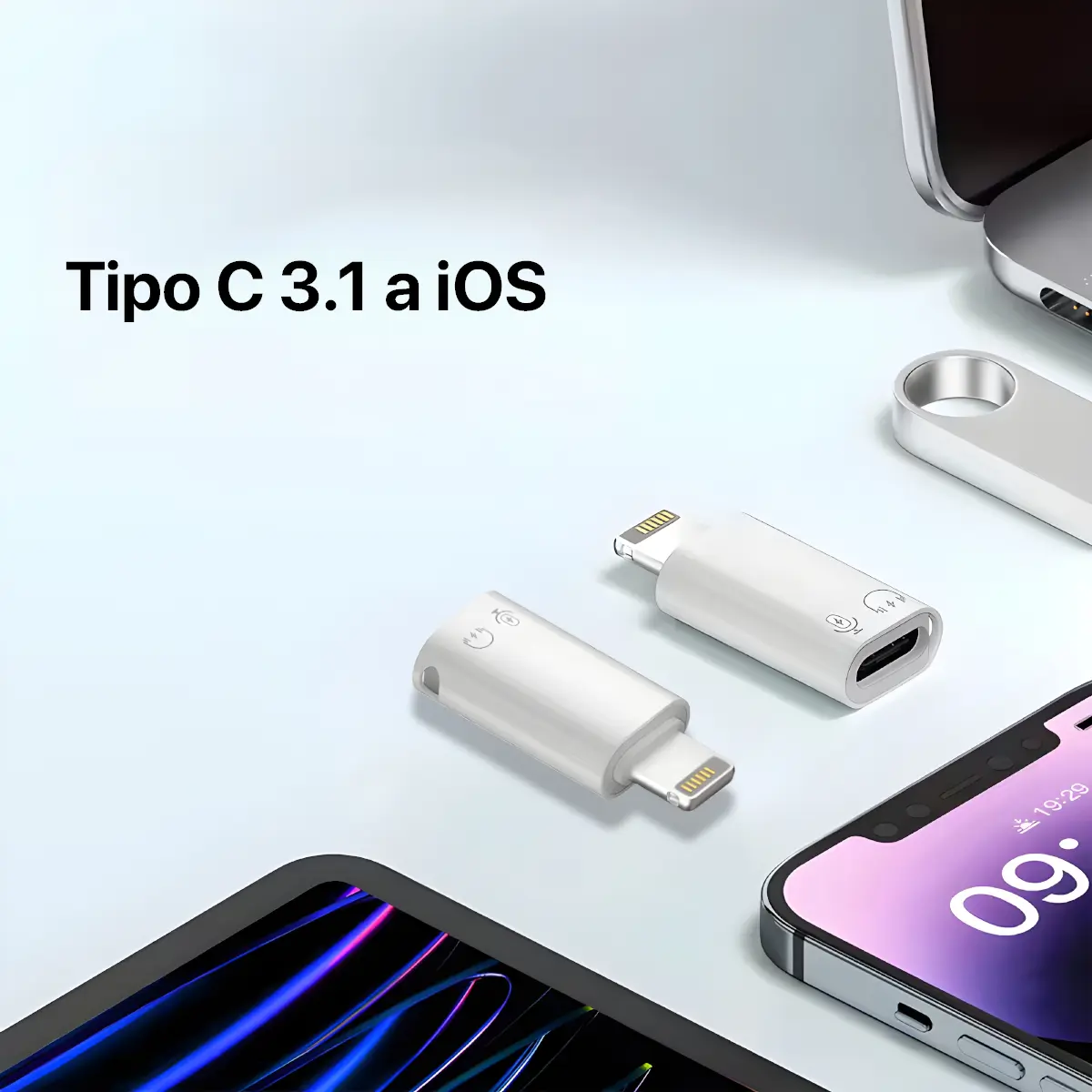 Este adaptador te permite usar cargadores, cables o periféricos con conector USB-C en equipos con entrada Lightning, como iPhones o iPads. Es ideal para aprovechar tus accesorios más recientes sin necesidad de comprar nuevos cables. Una solución inteligente para quienes manejan dispositivos con diferentes puertos en su día a día.