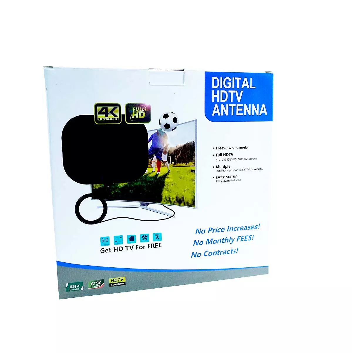 La antena digital plana con amplificador permite disfrutar de canales de televisión abierta con imagen nítida y sonido claro en resolución Full HD, mejorando la experiencia audiovisual en el hogar.