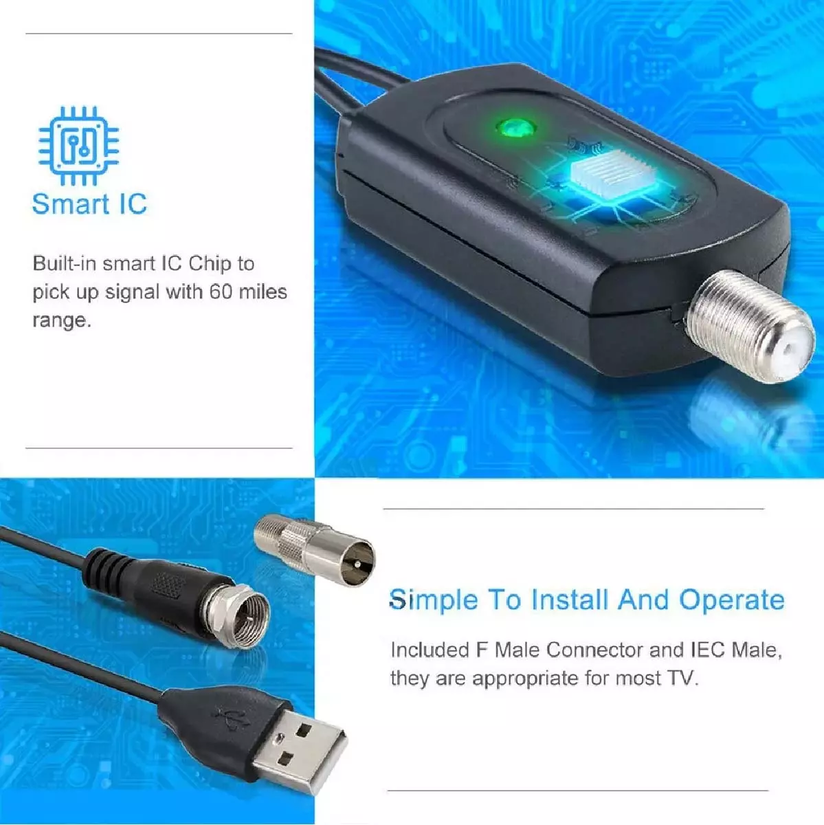 - Marca: Go Select Producto 100% garantizado – Antena Digital Tv Plana + Amplificador + Cable Coaxial 5m y Unión Coaxial RG6 TDT – FULL HD