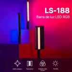 La barra de luz LED LS-188 ofrece un espectro completo de colores RGB, permitiendo elegir entre múltiples tonalidades y efectos dinámicos. Su sistema de iluminación ajustable es ideal para fotografía, video y creación de contenido, brindando ambientaciones personalizadas y profesionales.