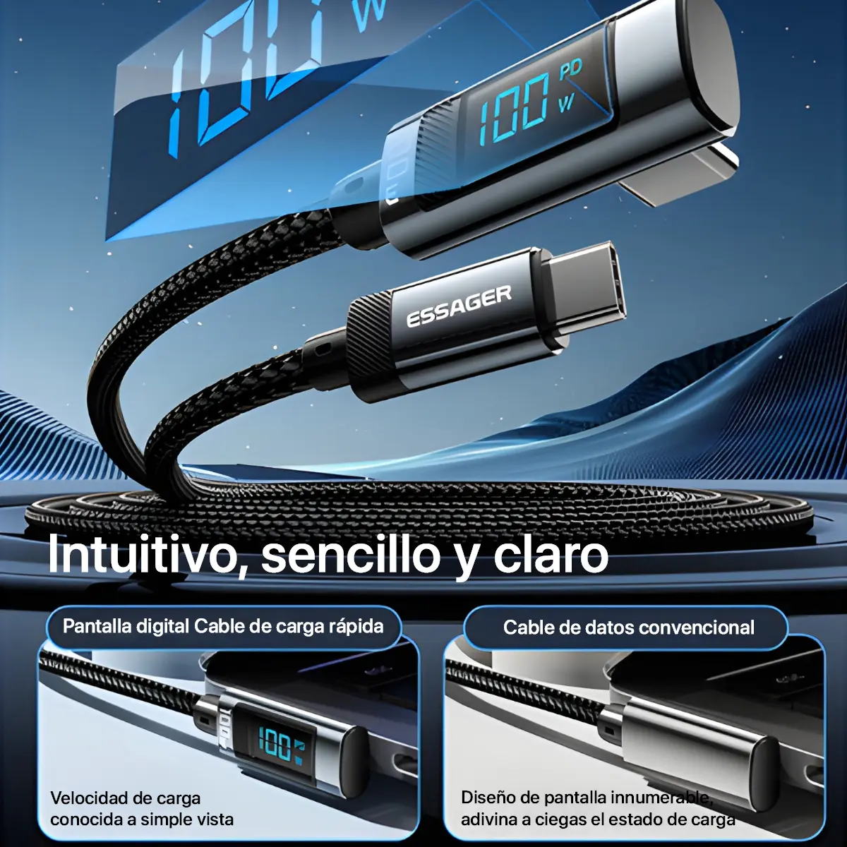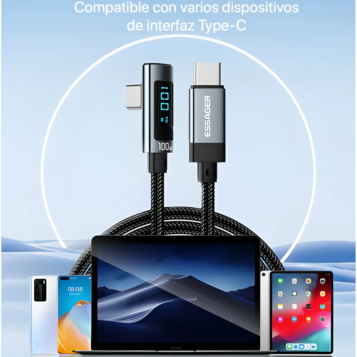 - Marca: ESSAGER 100% Original- Cable de Carga Rápida 100W Tipo C ideal para Android y iPhone, MacBooks