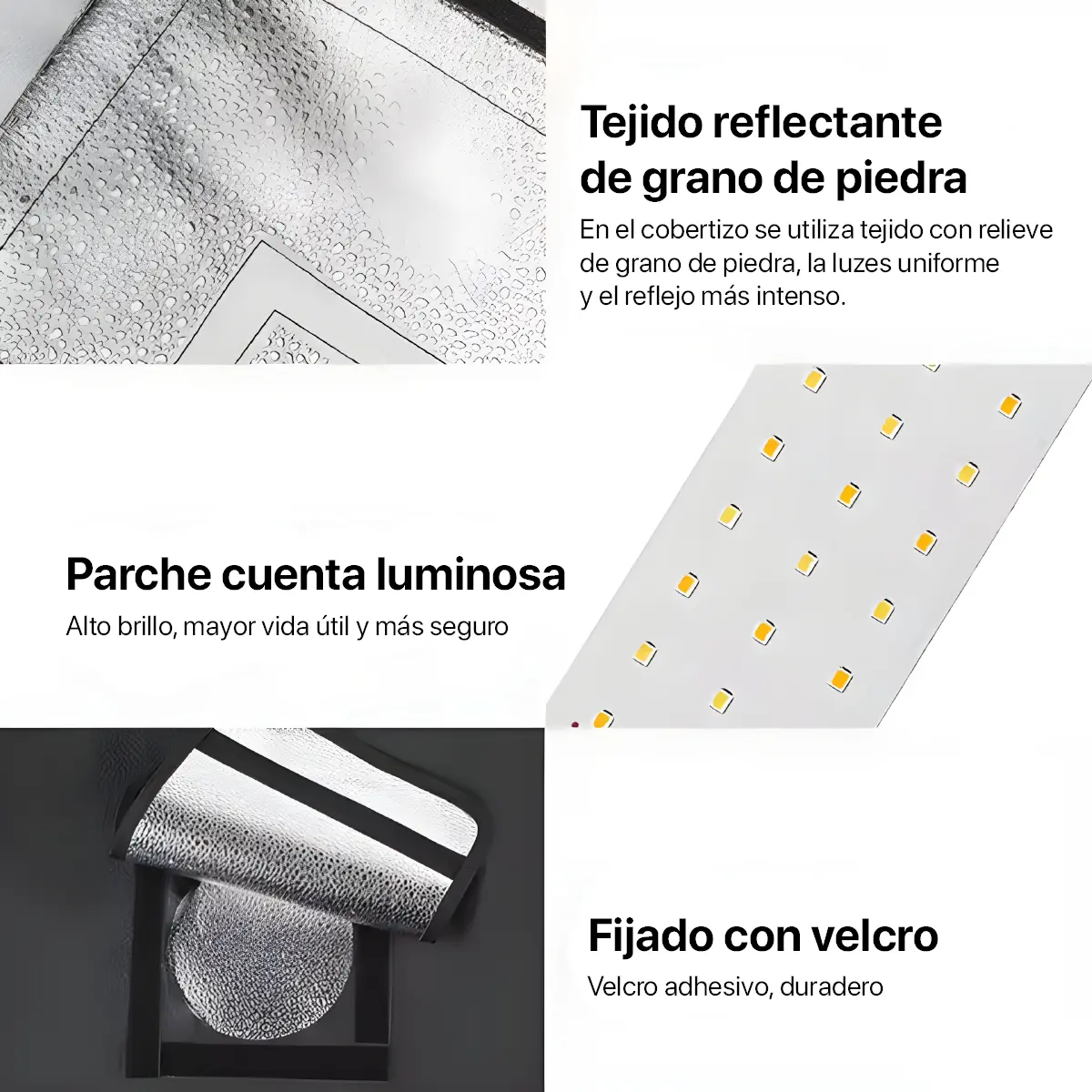 - Aberturas Superior y Frontal: Tapas con cierre de velcro y cremallera frontal para variar la posición de la cámara y regular la luz.
