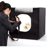 - Esta caja de luz de 80 cm brinda una iluminación estable y uniforme, ideal para fotografiar productos de forma profesional. Su interior reflectante distribuye la luz en las seis caras, reduciendo sombras y realzando detalles.