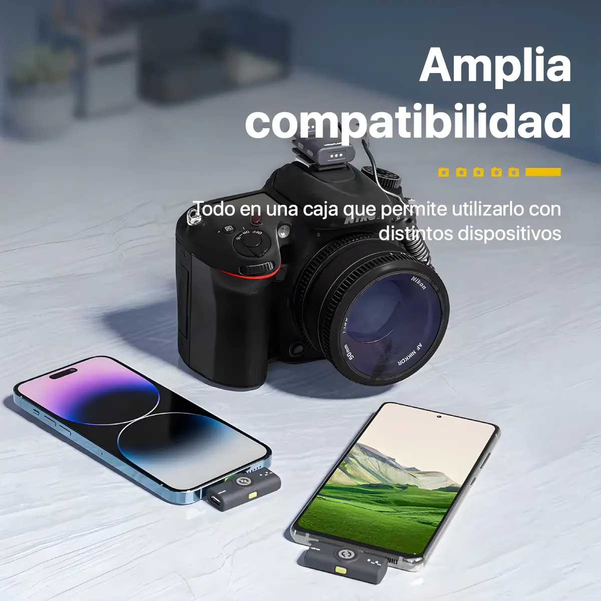 Gracias a su tecnología inalámbrica de última generación, permite una transmisión fluida y estable, evitando cortes de señal. Su alcance es ideal para grabaciones dinámicas con libertad de movimiento.