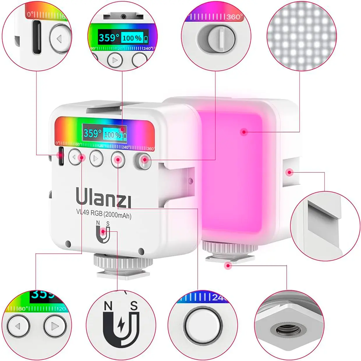 - Marca: Ulanzi 100% original – Mini Video Led Ulanzi VL49 RGB Recargable Blanco –