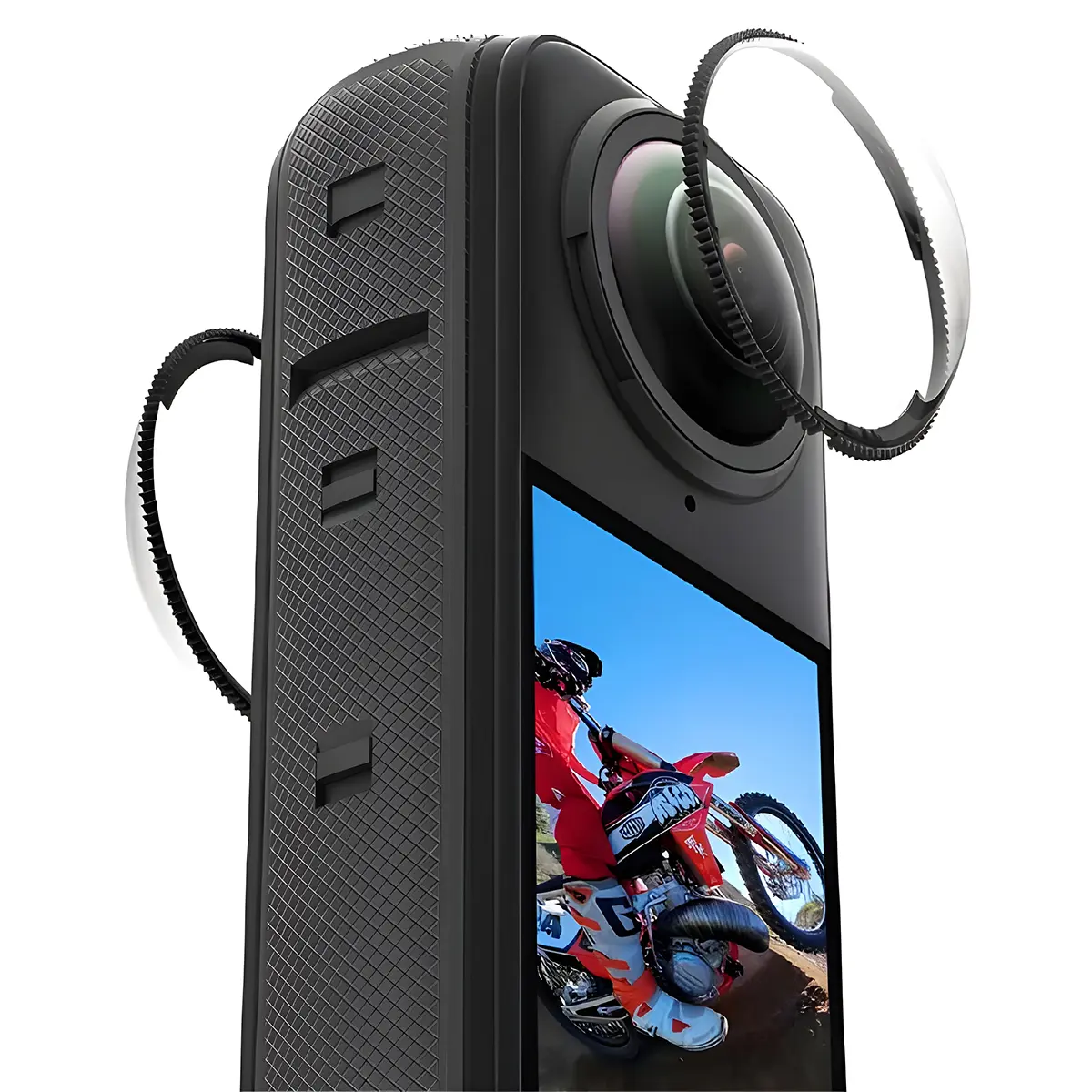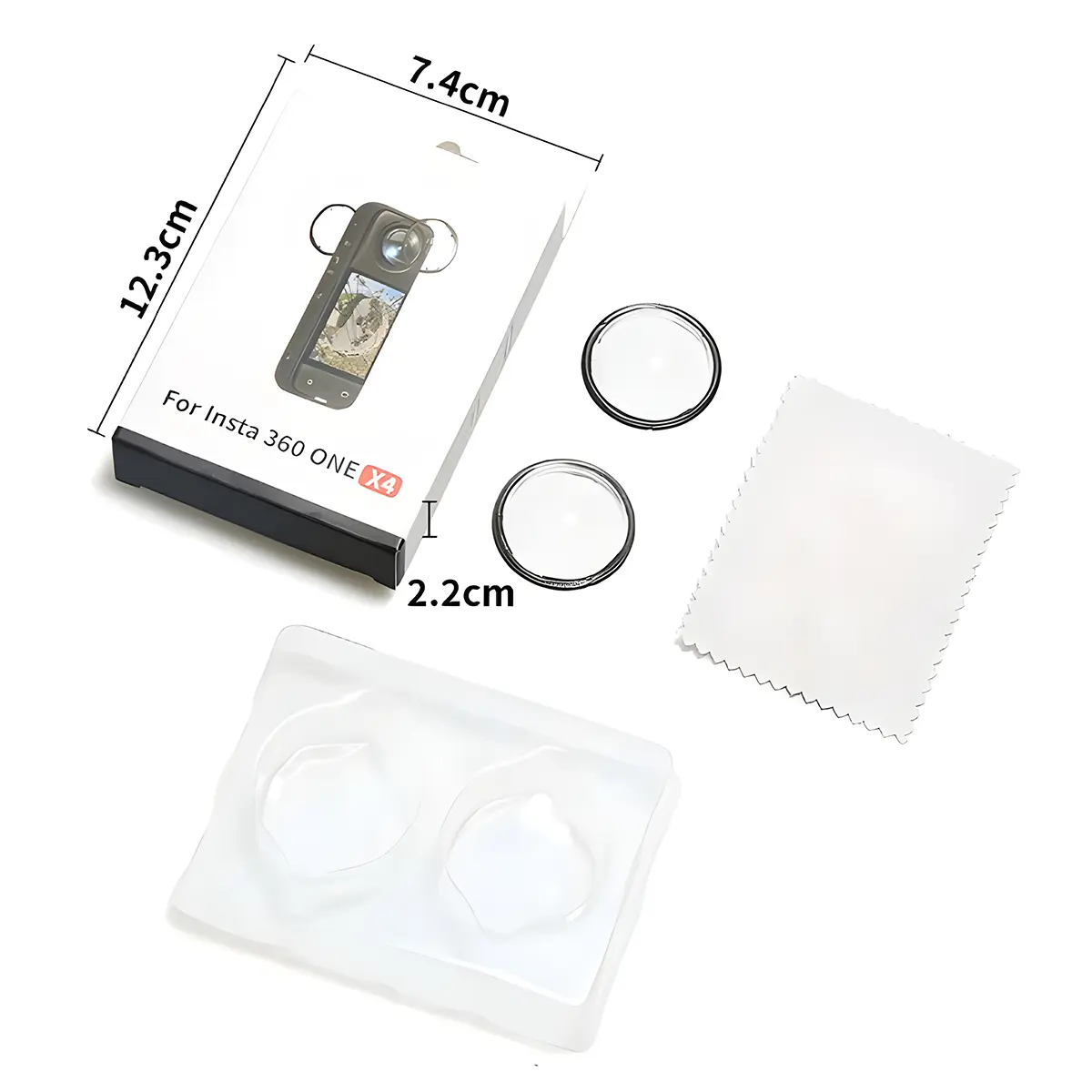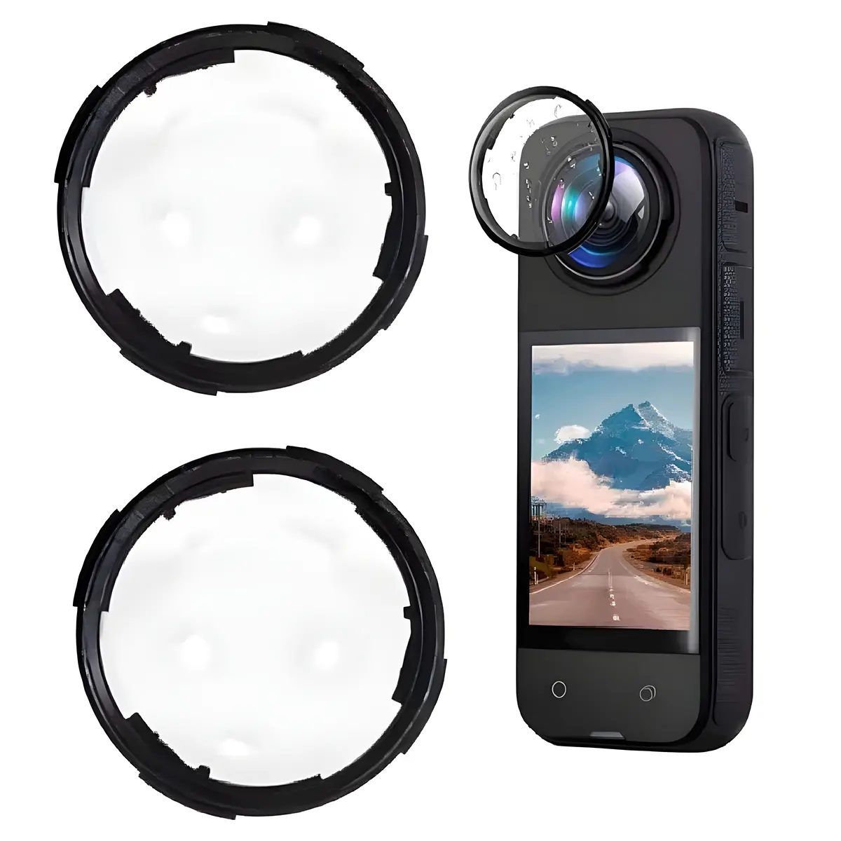 Protector de lentes para cámara Insta360 X4, diseñado para evitar rayaduras, polvo y golpes. Transparente, ligero y fácil de instalar sin afectar la calidad de imagen.