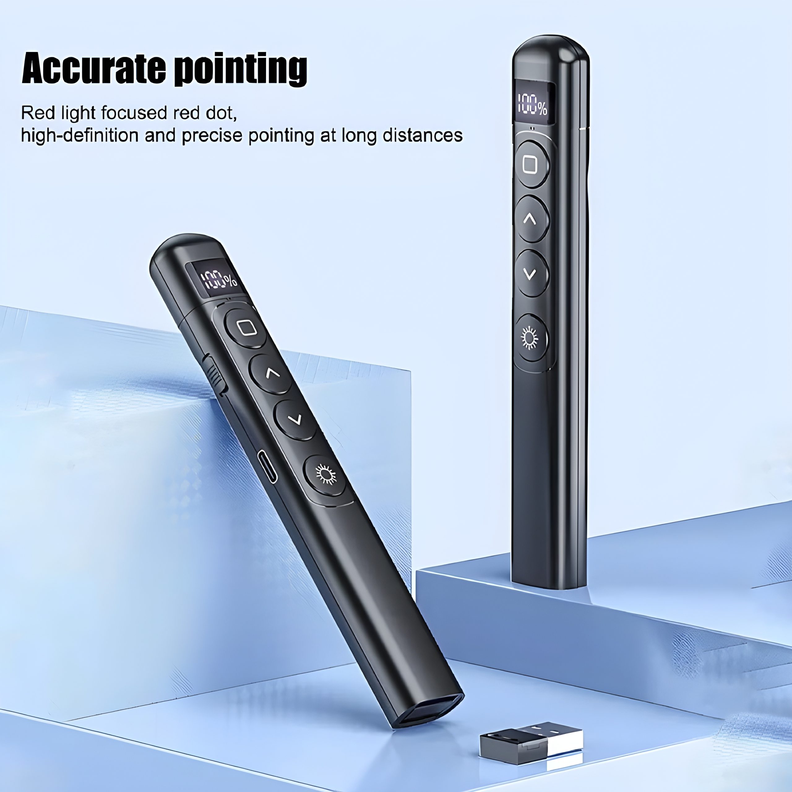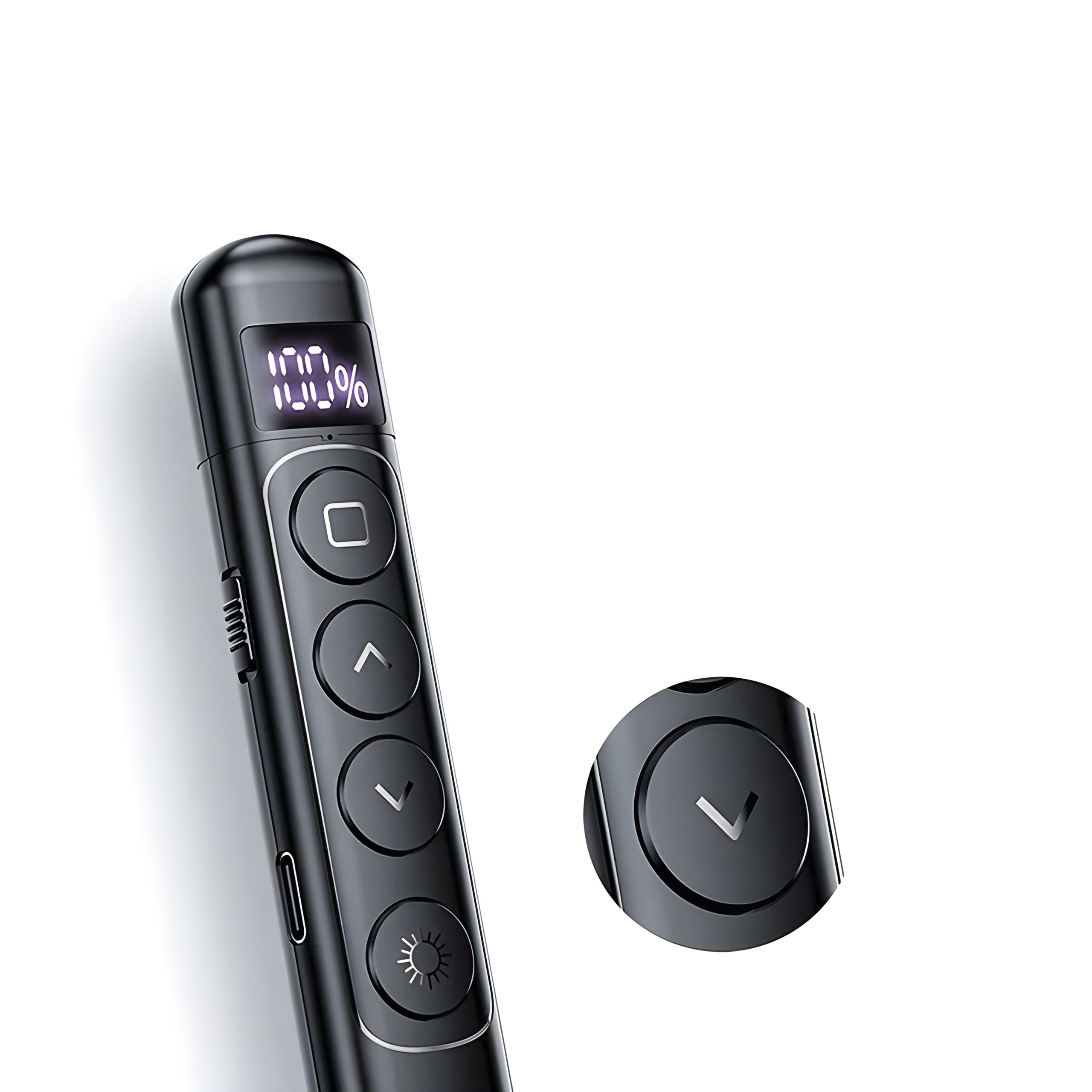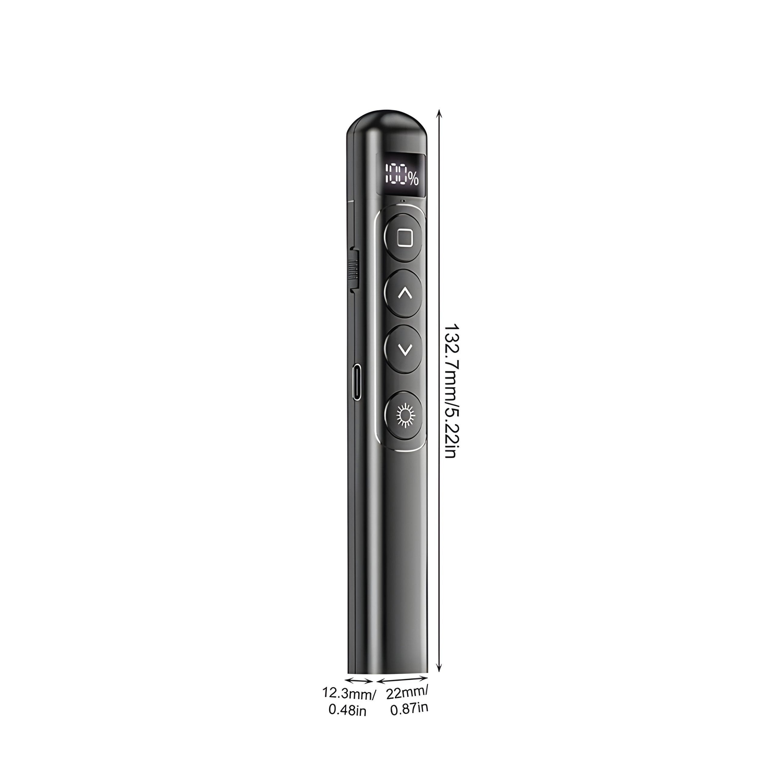 Con un acabado sofisticado en color negro, este puntero combina estilo y practicidad. Su tamaño compacto y peso ligero permiten transportarlo fácilmente en bolsillos o estuches, siendo perfecto para uso diario o profesional.