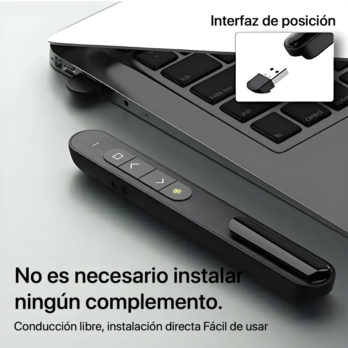 Incluye botones de navegación que permiten avanzar, retroceder y pausar diapositivas en PowerPoint u otros programas de presentaciones. Esto brinda mayor fluidez y profesionalismo durante clases, conferencias y reuniones.