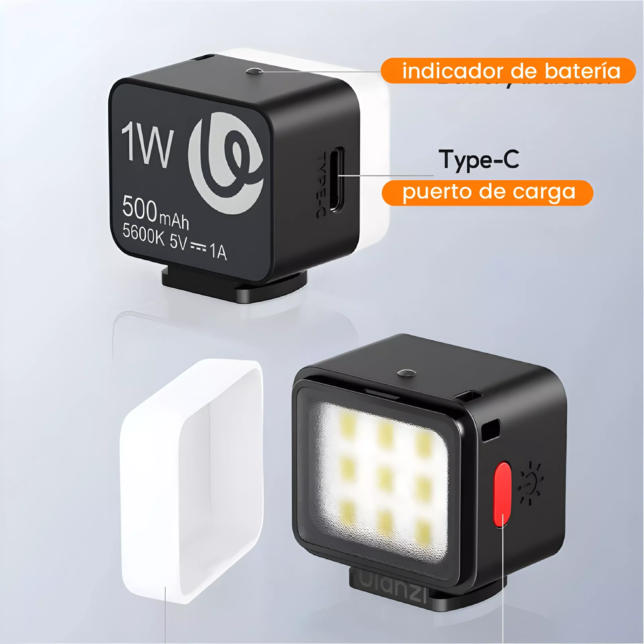 Su tamaño reducido y peso ligero lo convierten en un accesorio fácil de llevar en bolsos, mochilas o incluso en el bolsillo. Ideal para fotógrafos, videógrafos y creadores de contenido que necesitan una solución de iluminación portátil y eficiente.
