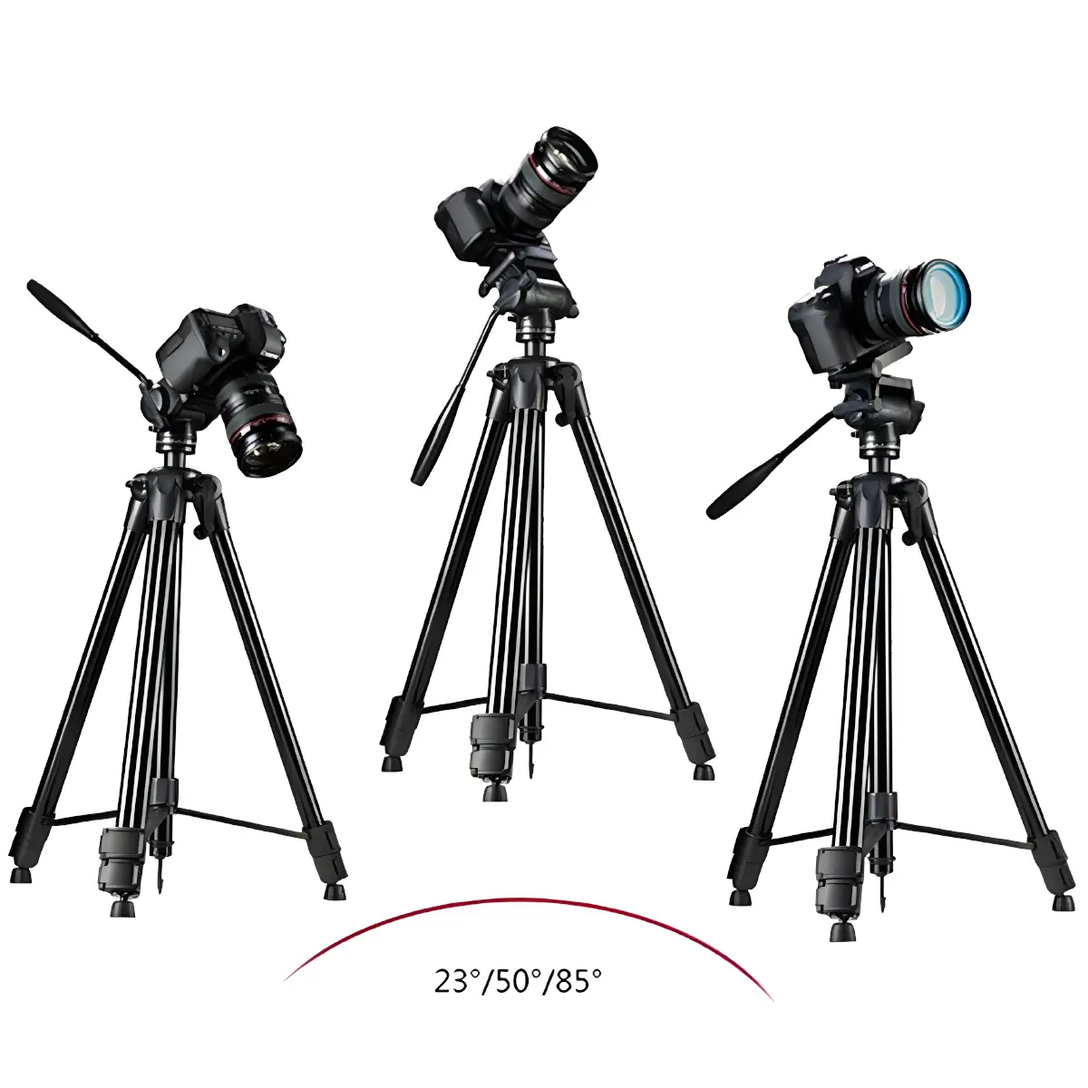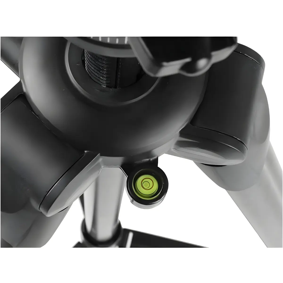 El cabezal permite movimientos suaves: panorámicas de 360° y ajuste vertical hasta 90°. Incluye perillas independientes para pan y tilt, placa de liberación rápida y nivel de burbuja integrado para encuadre preciso. Facilita la captura de tomas dinámicas en video y composiciones exactas en fotografía con total control del ángulo. El trípode es perfecto para el uso profesional que requiere diferntes ángulos de cada toma.