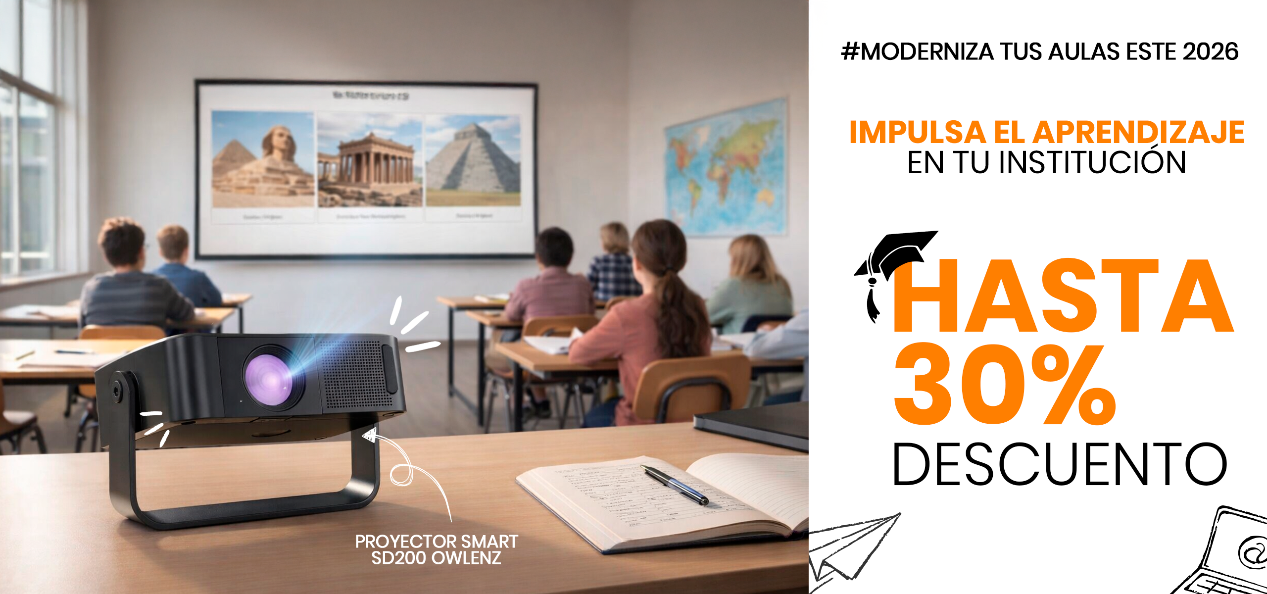 Impresoras térmicas, lectores de código de barras, proyectores, ecrans y punteros láser ideales para empresas, retail o centros educativos.